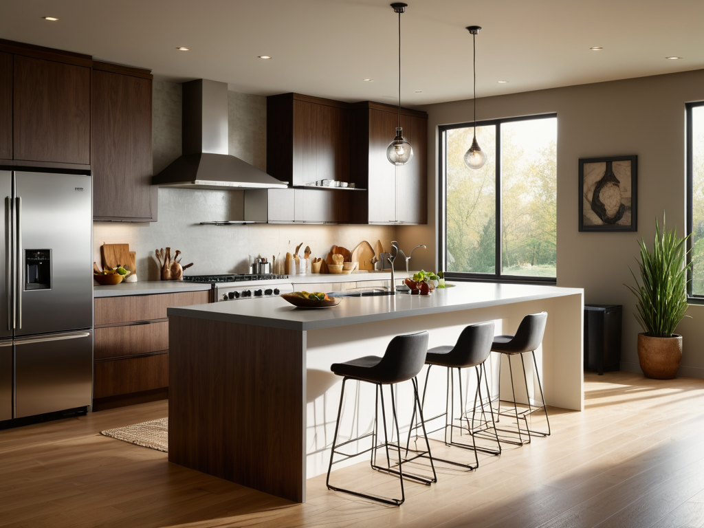 小户型的厨房设计应采用开放式布局,以增加空间感。可以考虑将厨房与客厅进行合理分隔,例如用吧台或岛台进行划分。存储方面,充分利用墙面空间,设计开放式的置物架或上柜。同时,选用嵌入式的厨电,例如嵌入式烤箱和微波炉,能够节省台面空间,保持厨房的整洁和美观。