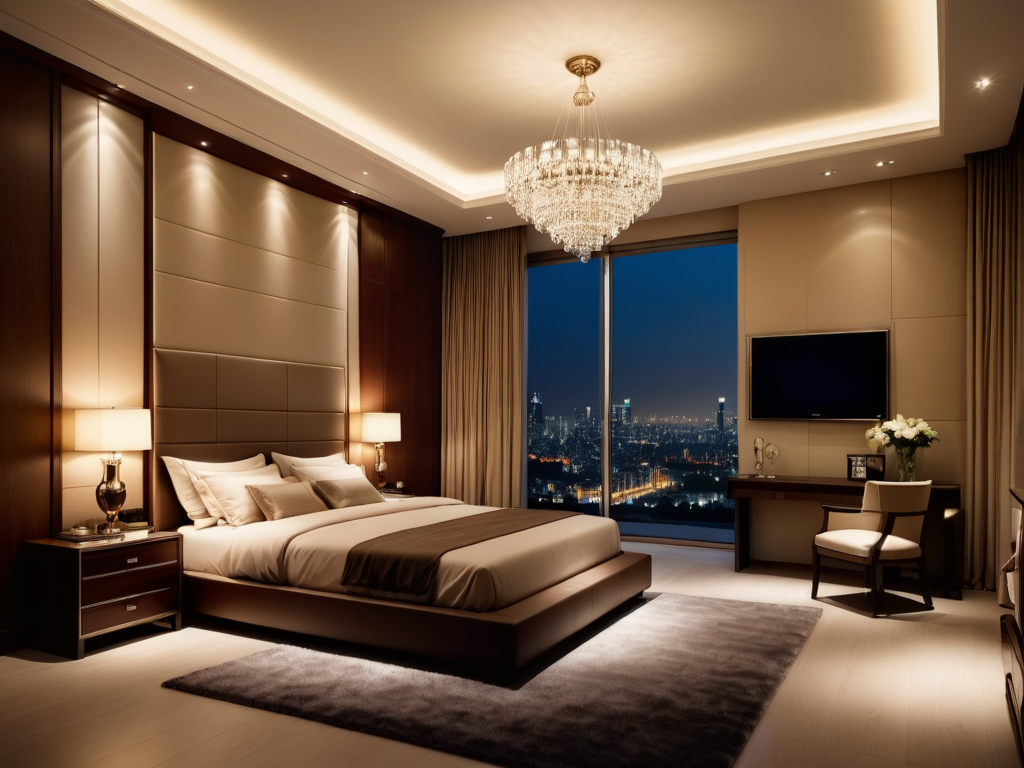 照明选择上,可以选择嵌入式的顶灯,提供整体的光线。床头可以加装壁灯或台灯,方便阅读。此外,使用暖色调的灯光可以营造温馨的氛围。若空间允许,还可以选择落地灯,增加房间的层次感和装饰感。