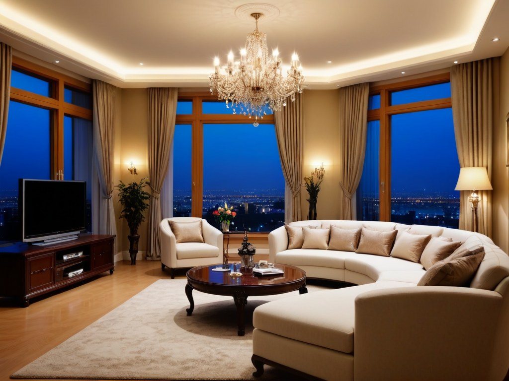 在中式装修中,灯具的选择应以简约而富有传统特色为主。可以选择中式吊灯、壁灯或台灯,材质上可以偏向于木质或铜质,造型上带有传统元素。同时,灯光的色温也应选择暖色调,以营造出温馨的氛围。此外,通过灯光的层次分布,可以突出空间的不同区域,增加整体的设计感。