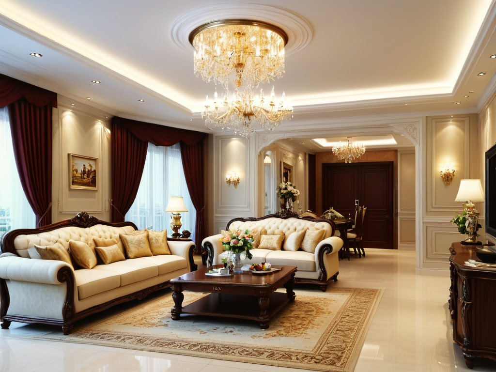 在色彩搭配上,新中式轻奢风格通常采用温暖的中性色调,如米色、浅灰、木色等,辅以一些亮色的点缀,形成和谐而富有层次感的视觉效果。家具的选择上,常见的有简约的中式沙发、茶几,以及一些具有现代感的装饰品,如艺术画作、陶瓷摆件等。这些元素的结合,使得整个空间既有传统的韵味,又不失现代的时尚感。