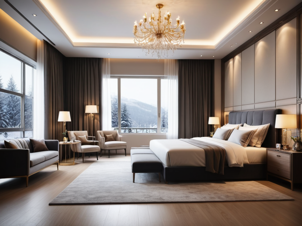 在新中式装修中,灯具的选择应注重与整体风格的协调性。可以选择具有中式元素的灯具,比如带有木质框架的吊灯或古典风格的台灯,灯光应柔和,以营造温暖的家庭氛围。灯具的高度和位置也应符合空间的实际需求。
