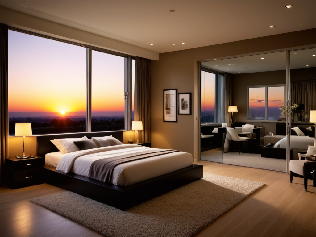 照明设计在现代简约风格中非常重要,可以通过选择造型简单的灯具来增强整体设计感。可以采用嵌入式灯具、轨道灯等形式,避免吊灯或过于复杂的灯具。灯光的亮度和色温也应适度,营造出柔和而舒适的氛围。