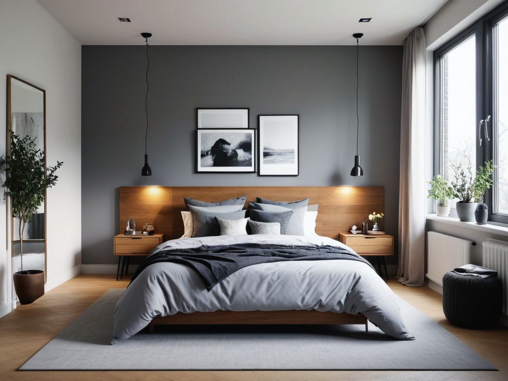 4. **书桌区域**:如果空间允许,可以在卧室内设置一个书桌,方便工作或学习。