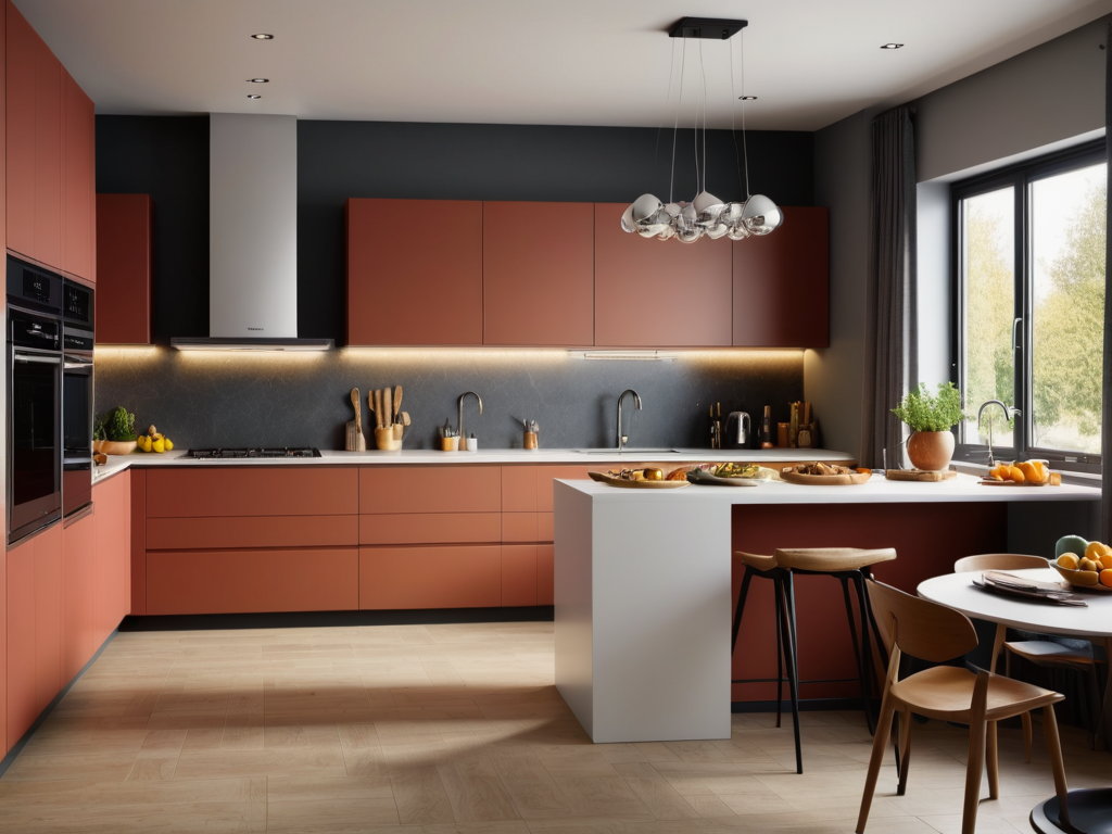设计整体橱柜时应考虑储物、烹饪、清洁等多种功能。应根据家庭需求设计合理的抽屉、柜子及开放式架子,以便存放锅具、餐具和食品。同时,考虑到清洁便利性,橱柜表面应选择易于清洗的材质。