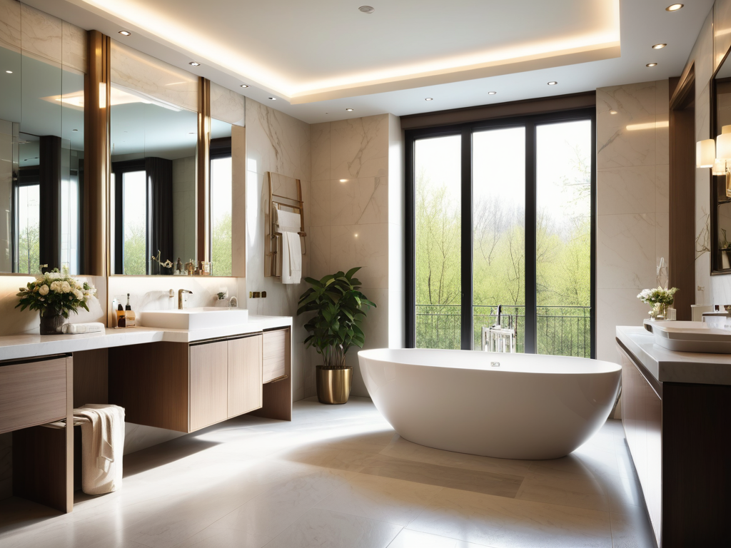 中式风格卫生间的地面材料推荐使用防滑且耐磨的瓷砖或天然石材,能够有效防止滑倒和损坏。瓷砖可以选择带有中式元素的花纹或简单的素色,石材则可用大理石或青石,展现自然质感。此外,地面设计可考虑流线型或几何形状,以增添视觉的趣味性。