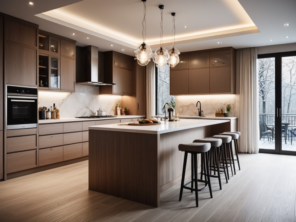 中式厨房的家具选择通常偏向于实木制品,既具有传统风格,又耐用。常见的有中式榻榻米、圆桌和中式橱柜等。橱柜设计应考虑到使用的便利性,最好选择带有推拉门的设计,以增加空间的使用效率。此外,家具的造型一般以简约、流畅的线条为主,体现出中式的优雅。