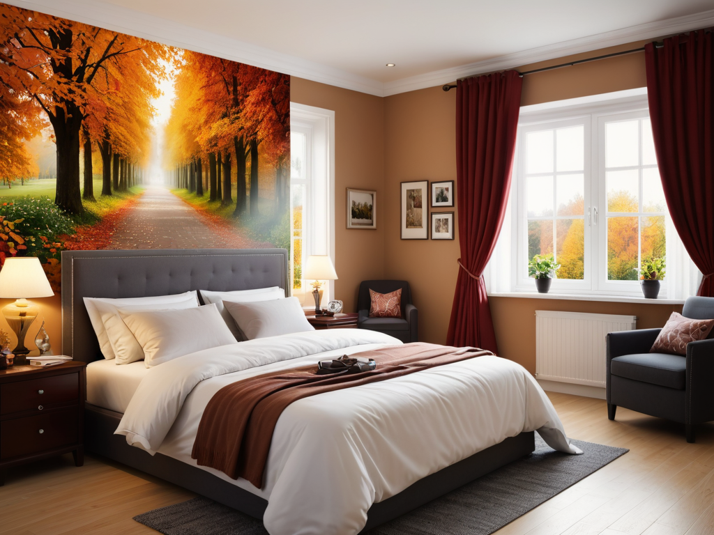中式卧室的窗帘可以选择质地柔软的布料,颜色以米色、浅棕色为主,图案上可以考虑使用一些传统的花鸟图案或山水画,增加中华文化的气息。同时,窗帘的设计应简洁大方,避免过于复杂的花纹,以保持整体空间的和谐性。