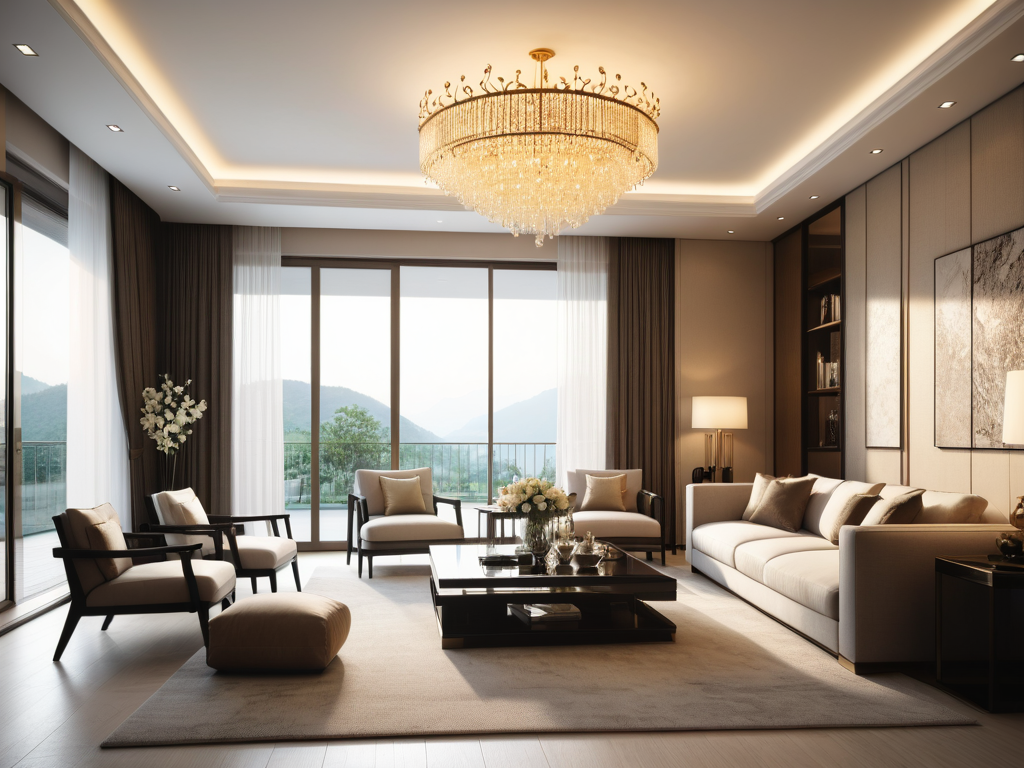 中式房屋的灯具设计往往偏向于传统与现代的结合,常用的灯具有灯笼、宫灯等。这些灯具不仅具有照明功能,还能作为装饰品,增添空间的文化氛围。在选择灯具时,建议选用暖色调的光源,以营造温馨、柔和的居住环境。