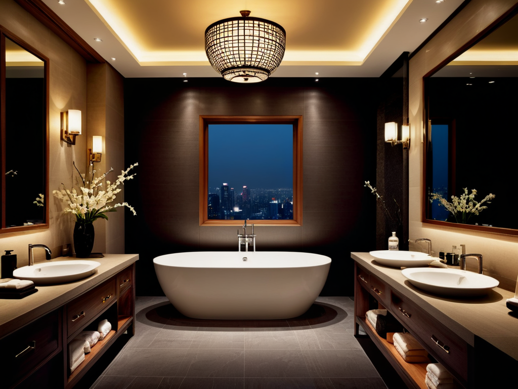 最后,透明卫生间的设计还可以通过灯光的运用来增强氛围。可以在卫生间内安装柔和的灯光,营造出温馨的氛围,同时也能让空间看起来更加明亮。通过合理的灯光设计,透明卫生间不仅能满足实用功能,还能成为主卧的一大亮点。