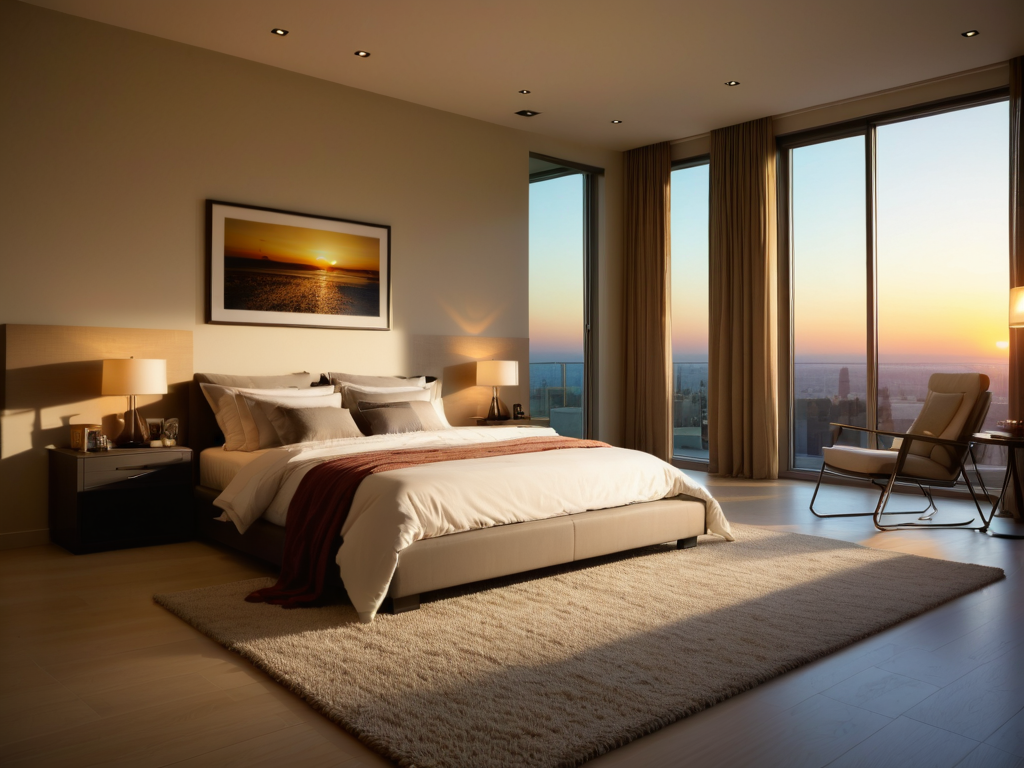 此外,极简效果图的灯光设计也不可忽视。自然光是极简风格的重要元素,设计时应尽量利用窗户和天窗,增加室内的采光。同时,选择简约的灯具,如吊灯或壁灯,能够在不占用空间的情况下,提供足够的照明。