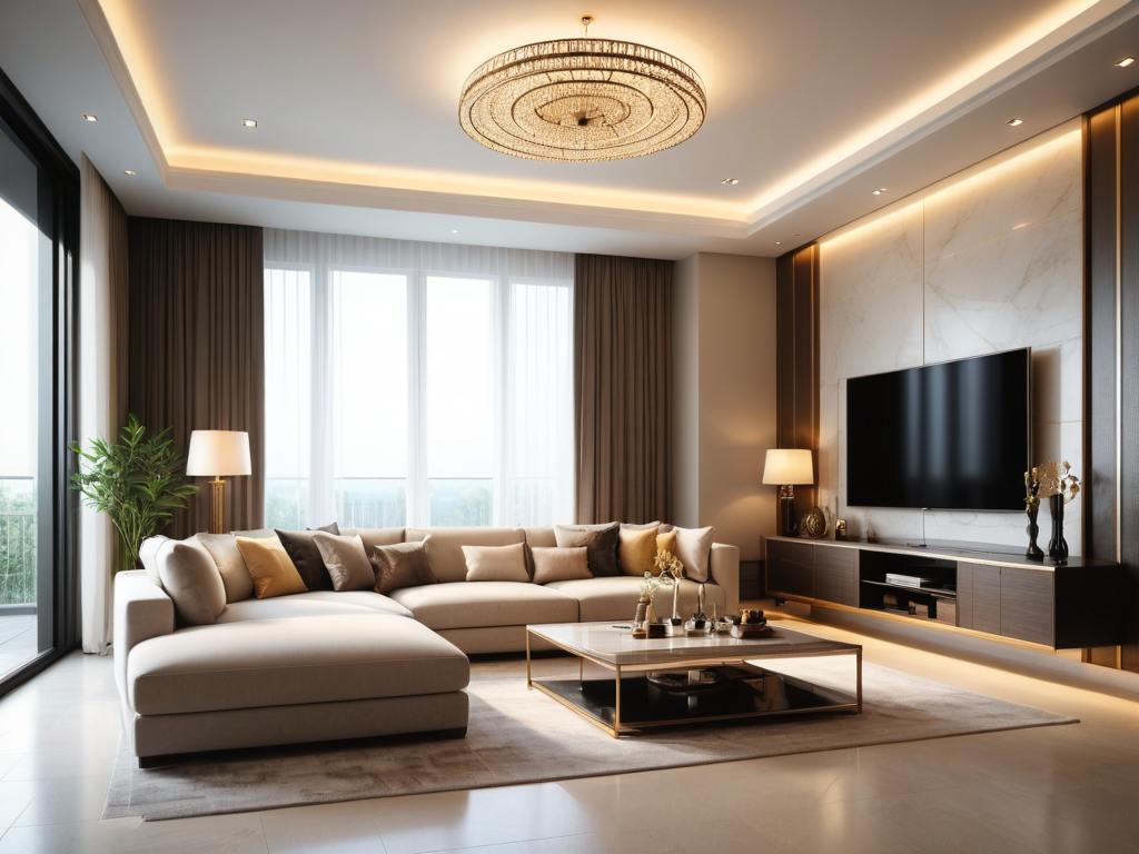 新中式样板房的照明设计应以自然光为主,辅以柔和的人工照明。可以选择一些具有传统元素的吊灯或壁灯,色温上应偏暖,以营造温馨的氛围。此外,局部照明可以用来突出某些艺术品或家具的细节。