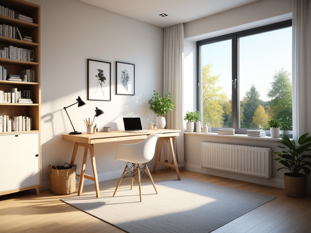 书房的窗帘应选择透光性好的材料,以保持室内明亮。同时,深色窗帘可以有效阻挡外界的光线,适合在需要安静氛围时使用。窗帘的颜色可以与书房整体风格相协调,以增强整体美感。