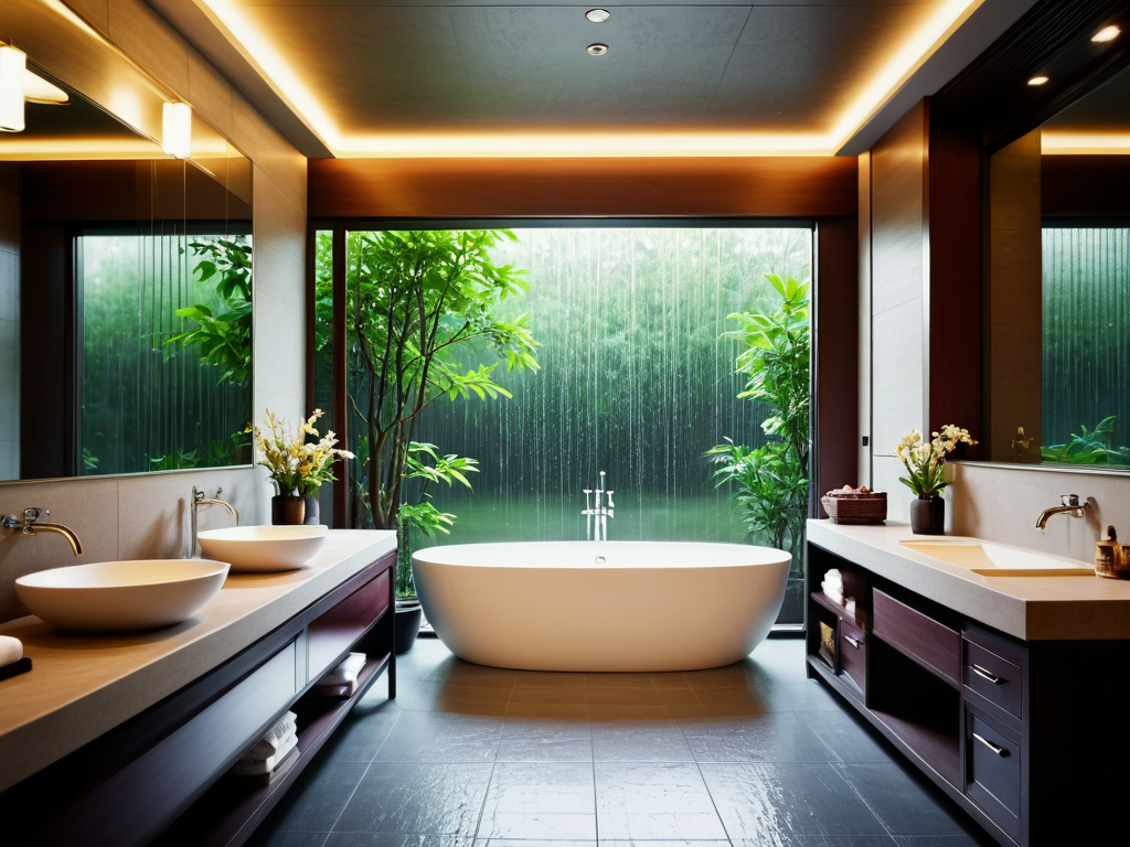 其次,卫生间的装修效果图同样重要。卫生间的设计需要考虑到空间的功能性和舒适性。现代卫生间通常采用简约风格,强调干净利落的线条和明亮的色彩。效果图中,卫浴设施的选择,如洗手盆、马桶、淋浴间和浴缸等,都是设计的重点。为了提高空间的利用率,许多设计师会选择嵌入式的卫浴设施,既节省空间又美观。此外,合理的通风和照明设计也是卫生间装修中不可忽视的部分,良好的通风可以防止潮湿和霉菌的滋生,而柔和的灯光则能营造出放松的氛围。