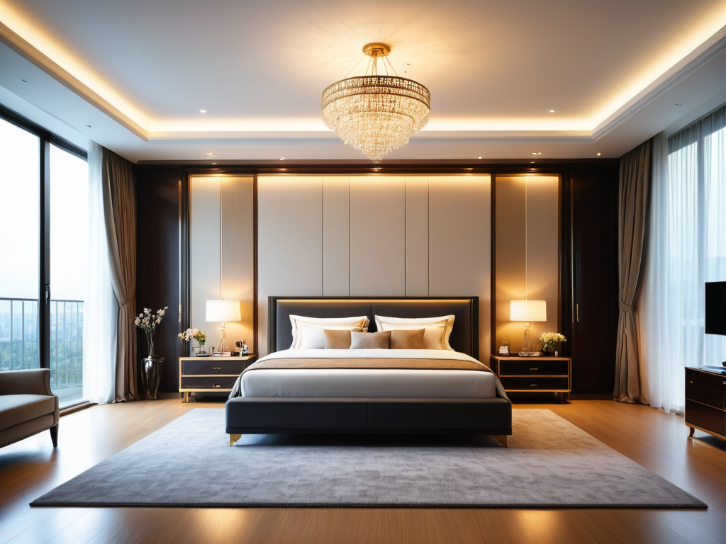 首先,吊顶的定义是指在房间的顶部安装一个装饰性或功能性的结构,通常是悬挂在原有天花板下方。吊顶不仅可以隐藏管线、隔音、保温,还能通过灯光设计来营造不同的氛围。在卧室中,吊顶的设计尤为重要,因为它直接影响到整个空间的视觉效果和居住舒适度。