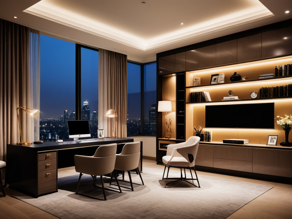 在布局上,现代简约客厅通常采用开放式设计,减少隔断,使空间更加流畅。可以通过合理的家具摆放来划分功能区域,例如将沙发与电视柜形成一个休闲区,而在一侧设置书架或小型工作区,既不占用过多空间,又能满足多种需求。