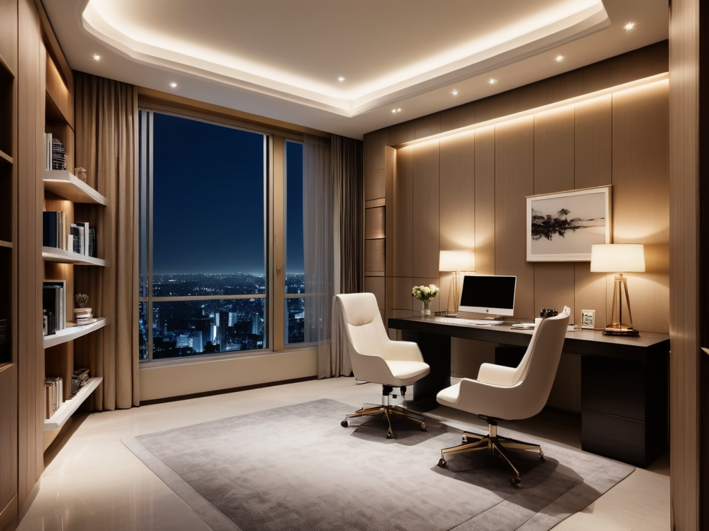 灯光设计可以选择暖色调的台灯和吊灯,营造温馨的氛围。还可以使用一些装饰性的灯串,增加房间的梦幻感。调节灯光的亮度,使其既适合学习也适合休息。