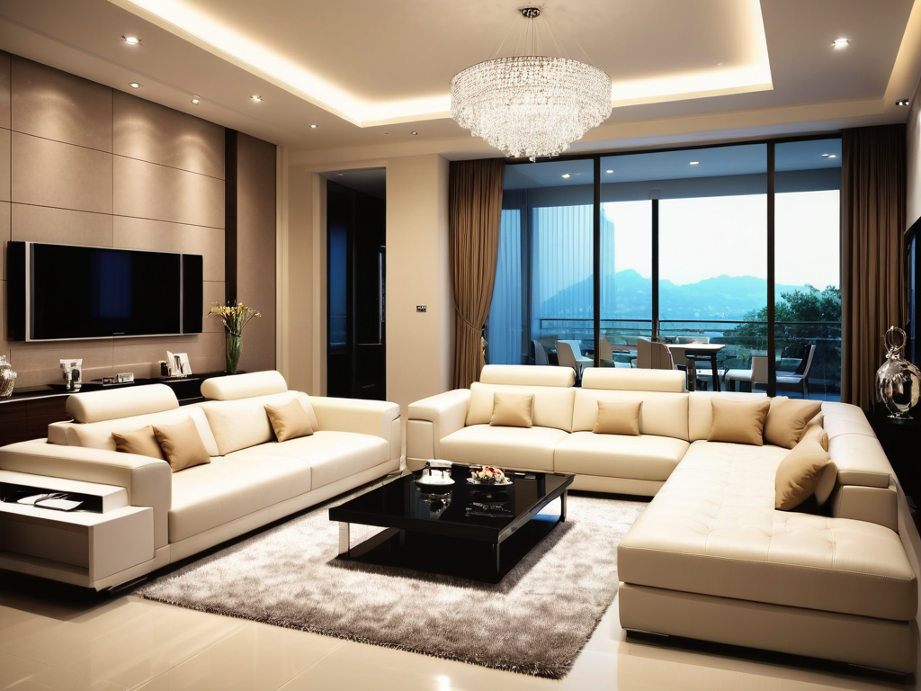 3. **色彩搭配**:轻奢风格的色彩通常以中性色为主,如米色、灰色、白色等,搭配一些亮色点缀,营造出和谐而富有层次感的视觉效果。