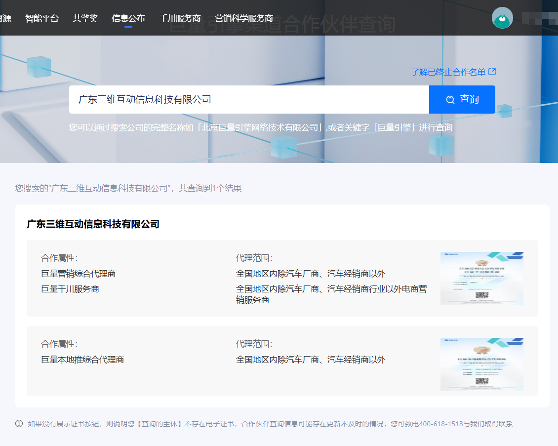 从巨量引擎方舟官网-信息公布-渠道合作伙伴查询三维互动代理商资格真实有效。