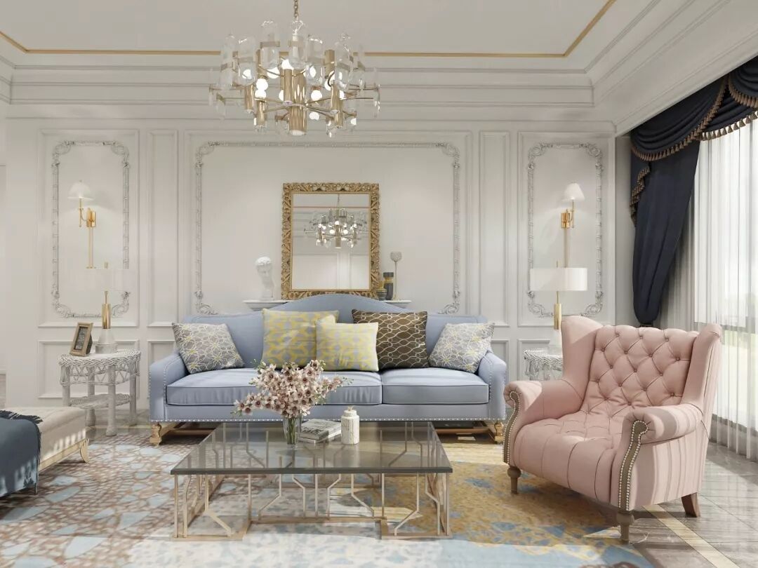 再比如材料的选择也非常有讲究,一般会选择华丽、精致的面料进行软装、硬装的打造,也会适当运用一些天然材料来进行整体装修效果的呈现。