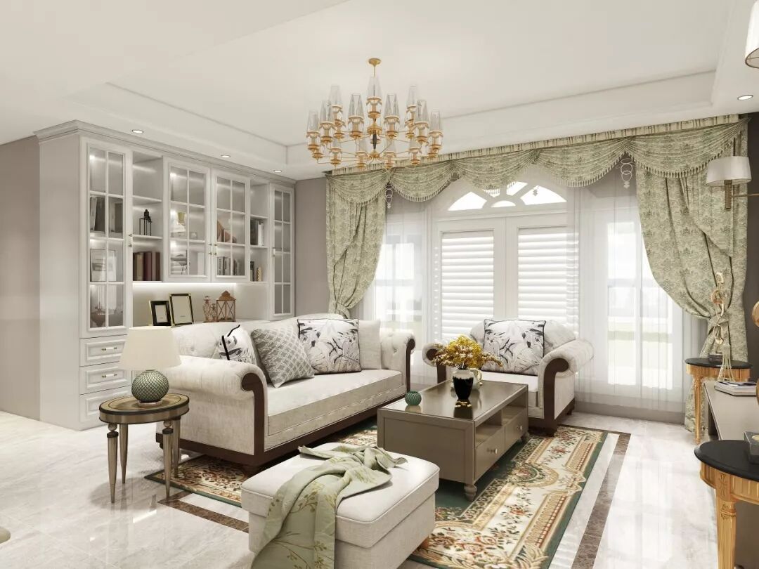美式简约风格一些细节装饰非常巧妙,而且约定俗成下来,也演变为美式简约装修的一大特点。比如美式简约风格的客厅一般会用暖色调进行装饰,还有客厅吊顶一般配有华贵的花纹图案,来营造一种温暖、舒适的整体氛围。