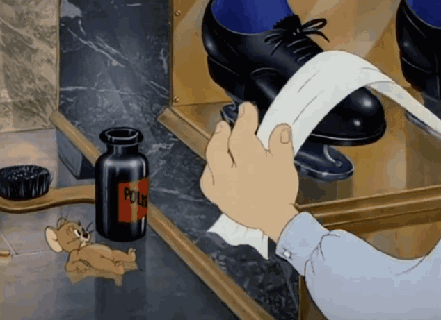 虽然《猫与老鼠》中对家居环境一再简化了,但这部在制作过程中精益求精的动画,对此没有丝毫的敷衍。明明只是一个简单的场景,连桌腿纹路和光泽感,踢脚线表面的纹路、和墙面链接的小凹槽、横切面的木头纹路,全都精细的表现出来了。